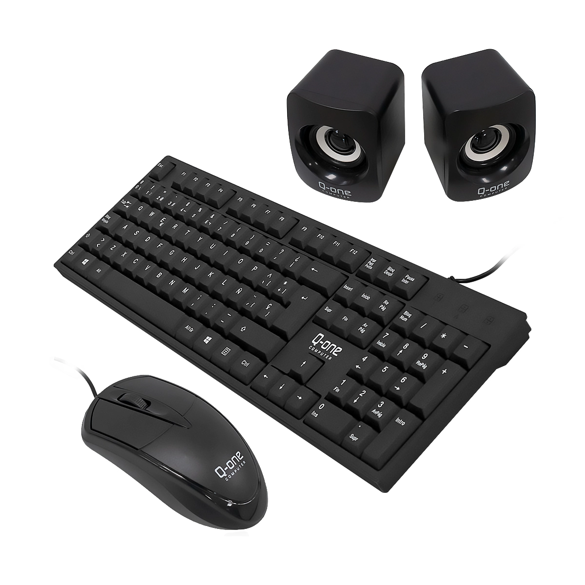 CASE Q-ONE C6016 ATX COMBO Parlante Teclado Muose 2USB 0.4mm PS-250W-Real Black